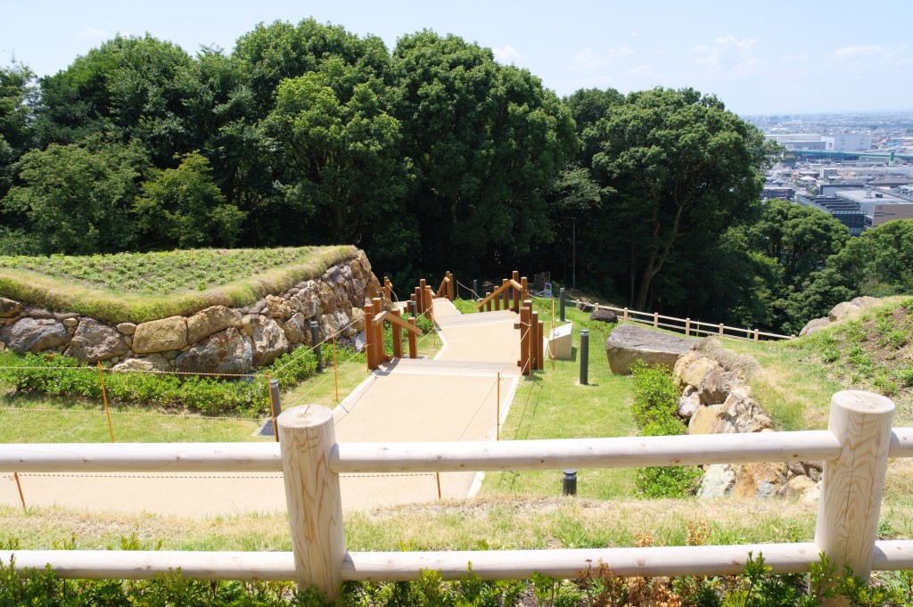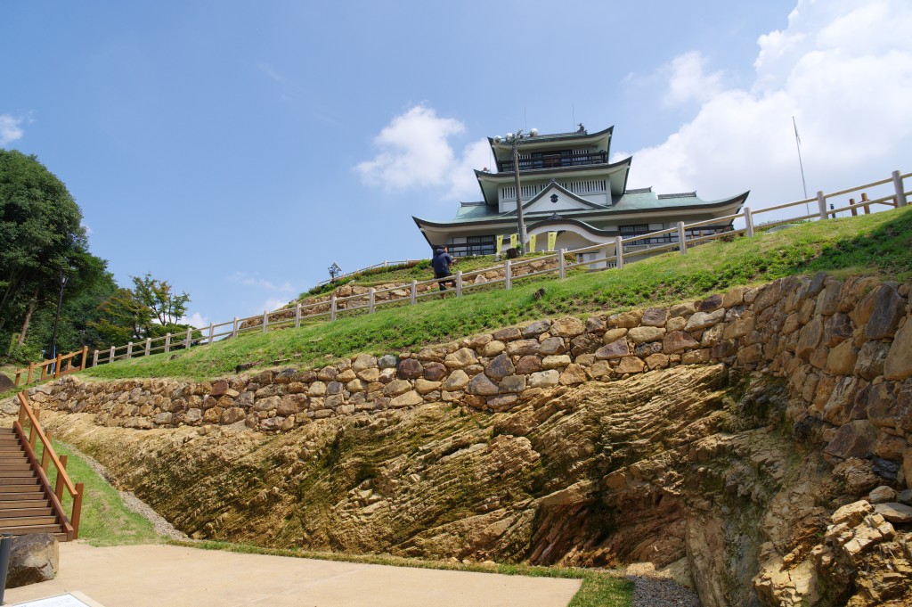 2024年7月、愛知の城巡り旅行に行きました。小牧山城は標高86mの小牧山にあった城です。織田信長により永禄6年(1563年)に築城され、小牧・長久手の戦いでは織田・徳川軍が陣を置いて羽柴秀吉と対峙しています。石垣や土塁や堀などの遺構が残り、史跡公園となっています。現在の城郭風建築(小牧山歴史館)は1968年(昭和43年)に実業家が建築し市に寄付したものです。