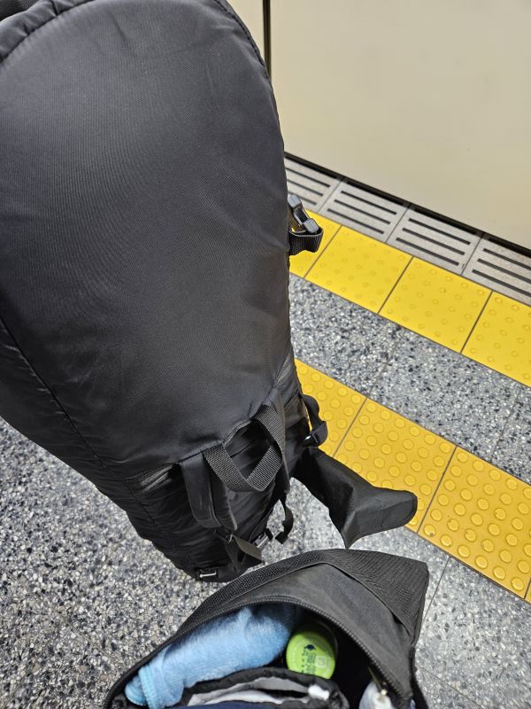ただ背負い続けると重たい楽器のためさすがに体に負担が蓄積していくので、駅のホームで待つ時や電車内などではその都度降ろすようにしていました(形状から自立せず手で支える必要あり)。これらの動作パターンは引き続き継承します。
