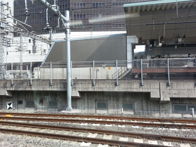 中央線が下ってくる頃に高架へ上り新幹線の上を通ります。結構急な勾配でした。新幹線は元々在来線より一段上だし、風景も高さがある。