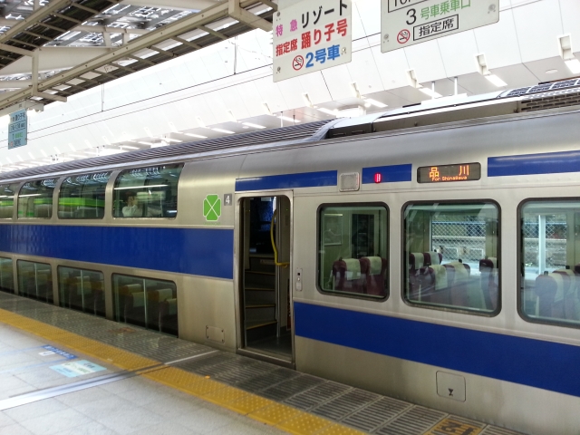 品川駅の東京方面は5番線、京浜東北線の隣から乗ります。横浜方面は工事中のホームをいくつか挟んだ先にあります。