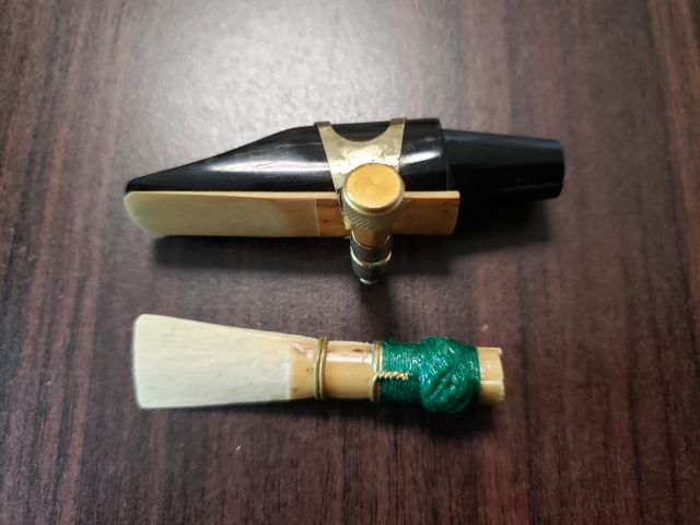 リードはファゴットのダブルリードのサイズに合わせてかエスクラかソプラニーノサックスという音域に対してかなり小型のものに対応しています。そのためマウスピース自体はサックスのものと比べるとかなり細身です。