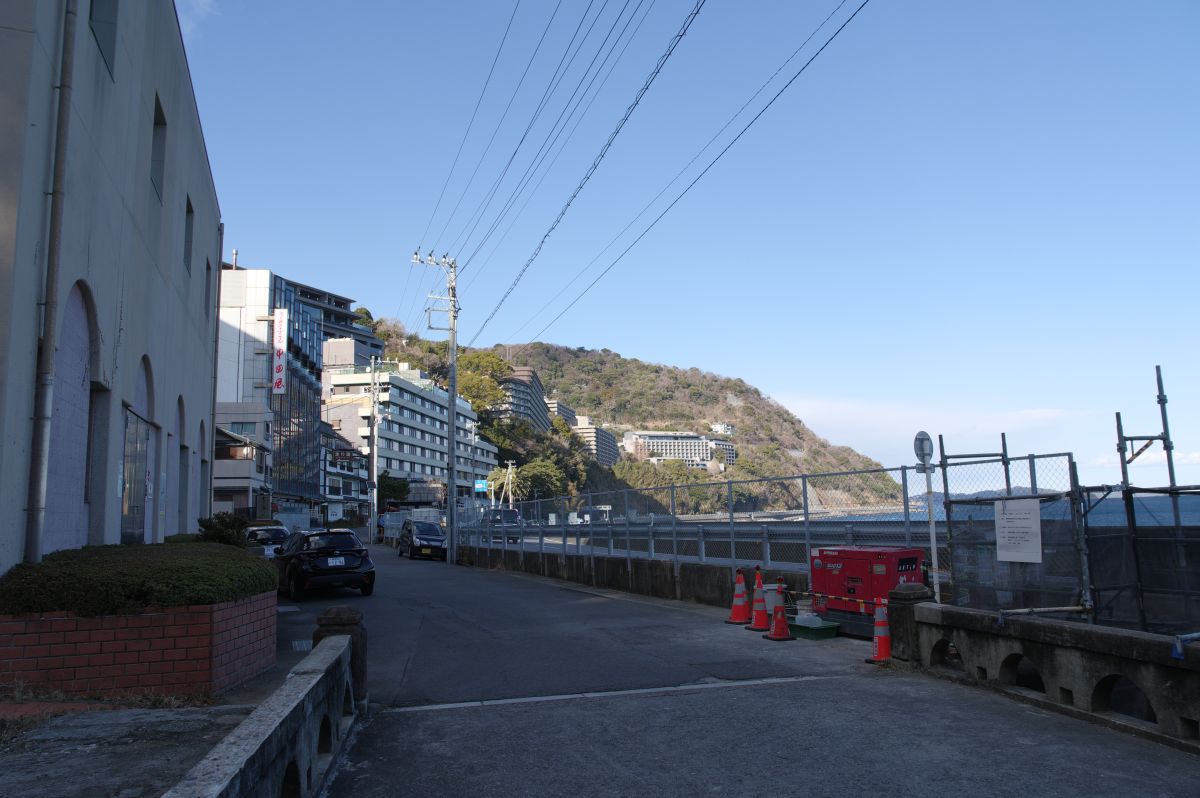 ・ホテル群と伊豆山港出口