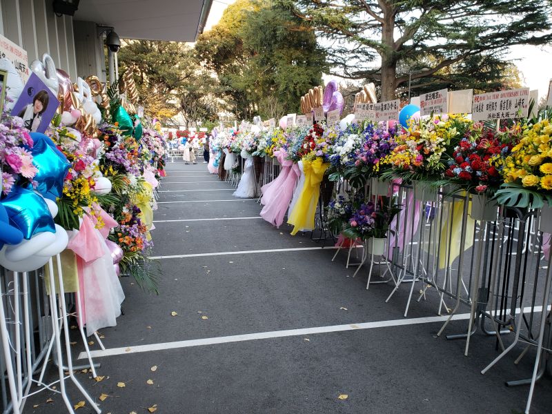 卒業する守屋茜・渡辺梨加への祝花も多く並びます。