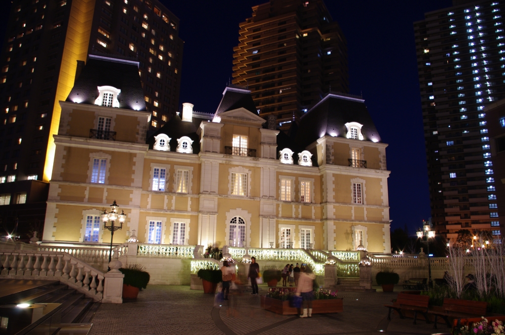 2011年12月、恵比寿ガーデンプレイスと大崎付近の「目黒川みんなのイルミネーション2011」を撮影しました。この日は夜に皆既月食があるためか、たくさんの人が集まってきれいな満月を眺めていました。恵比寿ガーデンプレイスは恵比寿駅から動く歩道を経て少し離れた所にある、ショッピング・オフィス等の複合施設。入り口にはクリスマスツリー、イルミネーションの並木、広場中央にはシャンデリアのイルミネーションがあります。上品な空間の中に、中央ステージではアーティストによる冬らしい幻想的な歌声が響いていました。