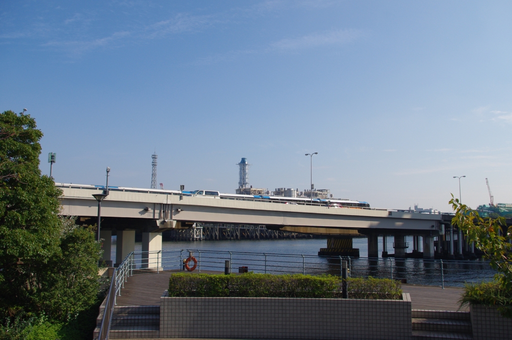 2011年10月、天気のいい日に天王洲アイルに行ってきました。以前訪れた時は雨でしたが、すごく雰囲気が気に入ったので撮りにきました。天王洲アイルはりんかい線と東京モノレールの駅がある、品川区にある比較的小さい人口島で、新幹線の止まる品川駅や羽田空港も近く、商業的には良い地理にあります。埋め立て当初の倉庫群から、近年の再開発で商業地区に変化しています。東京の臨海地区らしい開放感、都市型公園やオープンカフェがあり、高層ビルが立ち並ぶ近代的な雰囲気でした。一方で島の角には「第四台場」の石垣が残っていたり、歴史色も感じさせます。撮影コースは、りんかい線の天王洲アイル駅の南側から出て、品川ふ頭橋を渡って戻り、シーフォートスクエア内を散策し、モノレール駅の西側にある「ふれあい橋」へと進みました。