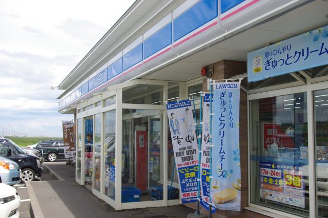 [3] 途中の市街地にはセイコーマートばかりでしたが、ここにはローソンが。入口は北海道仕様の二重扉。