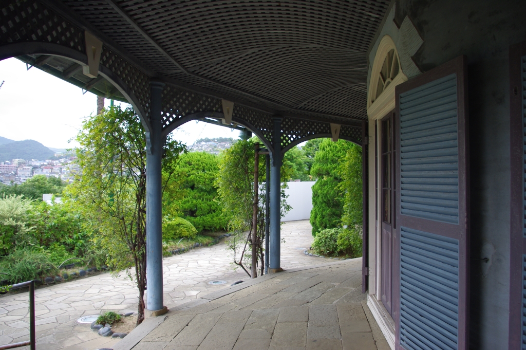 2013年8月、九州旅行に行きました。長崎県の県庁所在地長崎市へ。鎖国時代に外国との玄関口だった出島のある長崎は、洋館や教会など異国情緒を感じされる雰囲気で、横浜、函館、神戸と似ています。「坂の町」と言われるように、少ない平地と山の斜面に続く建物が印象的でした。南山手にあるグラバー園は長崎を代表する観光スポットの1つです。名物カステラ等を売る商店街の坂を登り大浦天主堂前を経て高台にあるグラバー園へ。園内も階段や坂を登りながら進み、有名なグラバー邸、オルト邸などの洋館や石畳の広場、花壇・噴水の庭園など西洋の雰囲気を味わうことができます。高台のため湾の対岸の長崎港の幅広い風景を眺めることができ、静かな園内からは船の一定のエンジン音が響き、港街の雰囲気を味わえます。高台には旧三菱第2ドックハウスがあります。趣のある西洋風建築の建物の2階からは長崎の街が一望できました。順路を進み、オペラ歌手三浦環(たまき)にまつわる展示をしているバンガロー形式の旧リンガー住宅、長崎の石造りの最大の洋風住宅の旧オルト住宅、ミッション系の学校の旧スチイル記念学校へ。洋風の建物・噴水・花壇・庭園などの異国情緒を味わうことができました。