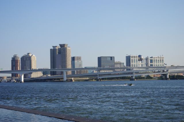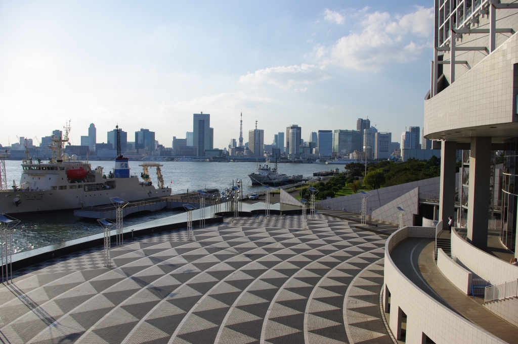 2013年9月、晴海客船ターミナルを訪れました。ターミナルは晴海ふ頭の南西の先端に位置し、周囲が海や空き地のため静かで眺めが開放的。潮風が心地よくひとけも少ないので落ち着ける場所です。今回で2度目の訪問で、2020年に開催予定の東京オリンピックではターミナル周辺の広い空き地に選手村が建設される予定であるものの、前回訪れた時と比べて風景にまだ大きな変化はありませんでした。今回は天気に恵まれ、360度霞むことなく明瞭で開放的な風景を眺めることができました。東京スカイツリー、東京タワー、お台場、レインボーブリッジ、オリンピックの選手村と、東京のアクティブなスポットを一度に眺めることができる穴場スポットです。