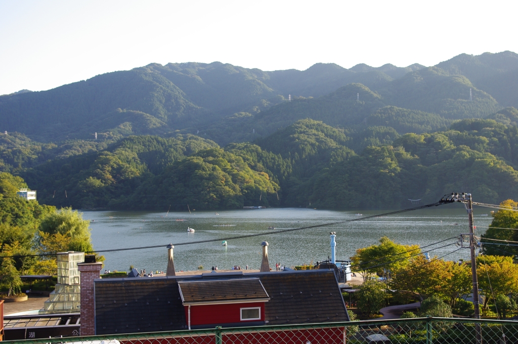 2013年10月、相模湖を訪れました。相模湖は神奈川県相模原市緑区(元相模湖町)に位置するダムによる人造湖で、県央を流れる相模川に注いでいます。最寄の相模湖駅は八王子市の高尾駅から1駅下った所にあり、トンネルを抜けると山並みに囲われた高低差のある別世界に変化します。駅の外は涼しく澄んだ山の空気、閑静な街を走る交通量の多い甲州街道を横切り急斜面を下り相模湖へ。折り重なるきれいな緑の山並みに囲われた平らな相模湖の湖面。芝生で寝る人、遊ぶ子連れ、散歩と散歩する人、釣りをする人、ボートやカヌーで遊覧する人などで賑わう心地よい場所でした。山で物理的に隔離されているからか、のんびりと時間の過ぎる、都会の喧騒を忘れられる憩いの場でした。