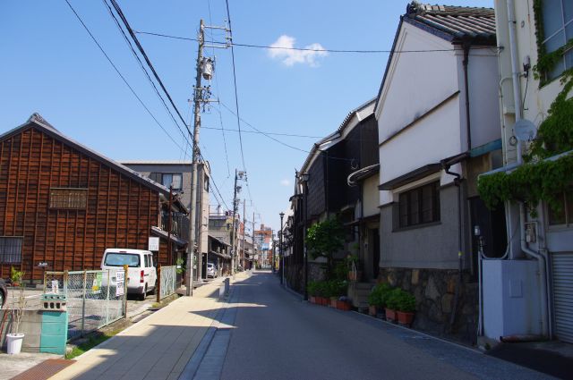 2013年4月、名古屋旅行に行きました。納屋橋から堀川沿いを北上して錦橋、伝馬橋、桜橋、中橋と進み、堀川の西岸の浅間神社前からは四間道(しけみち)町並み保存地区が続きます。四間道は名古屋城築城の際の「清州越」で移転して来た商人の町です。四間道は1700年の大火の後防火の目的で四間(約7m)に広げたことから名づけられました。通り沿いには黒い木造の古い造りの建物や石垣の上に建つ蔵が並び、下町情緒を残しています。四間道を抜けると五条橋、子育て・安産の寺の円頓寺(えんどうじ)のある、アーケードの円頓寺商店街に出ます。