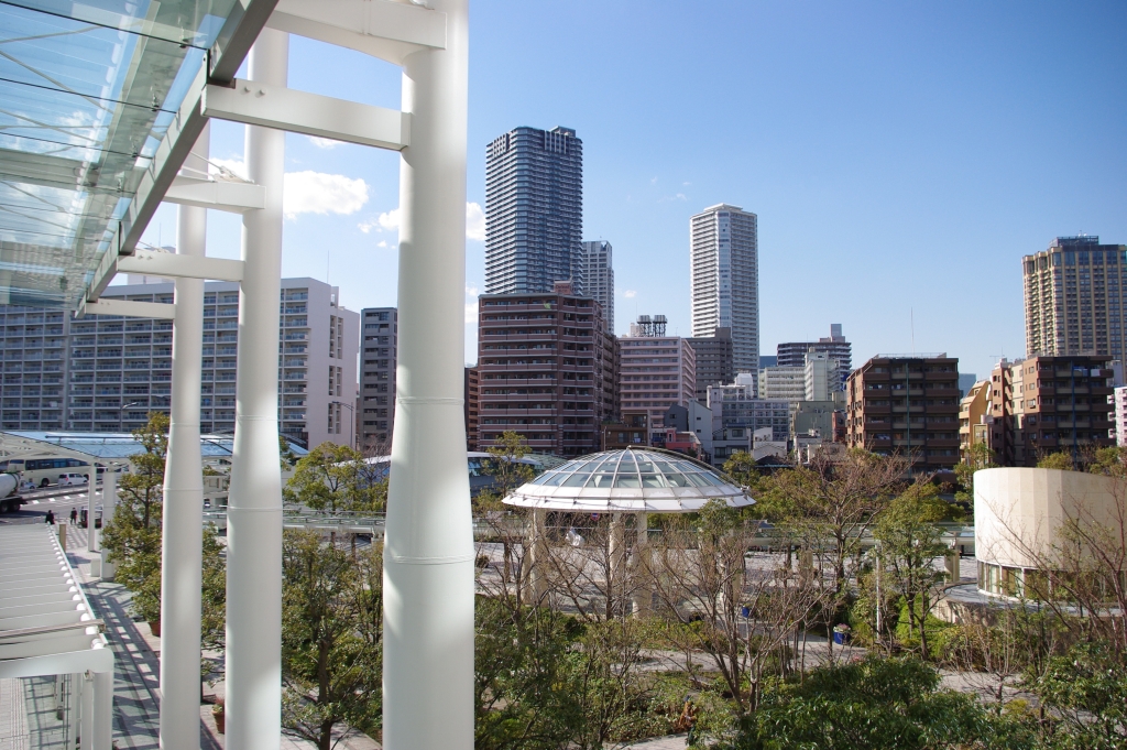 2014年3月、晴海トリトンスクエア周辺を訪れました。勝どきから晴海通りの黎明橋を渡ると左側にトリトンスクエアの3棟のビルの内2つのビルが見えてきます。広い道路や広場、清潔感のある白色の壁や光を通すガラス張りの屋根、無機質さを緩和する目に優しい緑の街路樹、新しく整備された臨海地区特有の心地よさを感じます。晴海通り沿いに車は多いながら人通りはあまり多くないですが、運河沿いに散歩をする人達はどこかセレブ感を感じさせる雰囲気です。オフィスタワーのロビーはとても広く開放的で、その先にはショップ&レストランの晴海トリトンが続きます。運河側の外には花のテラス、水のテラス、緑のテラスがあり、新しい建物と自然の心地よさが共存しています。