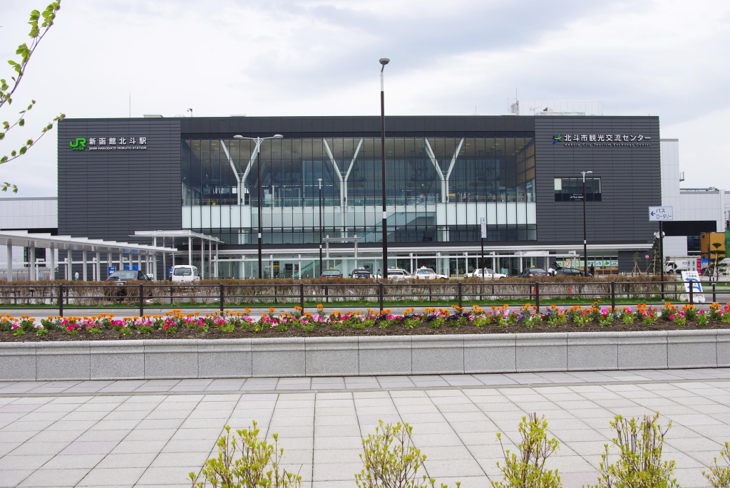 2016年5月、北海道旅行に行きました。新函館北斗駅は今年3月に開通したばかりの北海道新幹線部分開業の終着駅です。函館の中心地からは離れていてあくまで函館への中継駅といった感じです。駅周辺は道路や施設が整備中で、周囲は民家が少しある程度で広々とした畑が広がり閑散とした雰囲気です。開業間もない真新しい駅舎内はガラス張りの開放的な雰囲気で、お店や地域の紹介や観光案内所があります。北海道新幹線は2031年には札幌まで開業予定です。