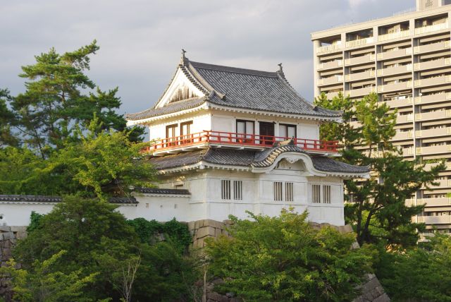 2017年8月、広島旅行に行きました。福山駅は福山市の中心駅で、JR西日本の山陽本線、福塩線、山陽新幹線が乗り入れています。しまなみ海道を渡る高速バスも発着し、四国への連絡口にもなっています。駅は高架の在来線の上に新幹線ホームがある三層構造になっています。福山駅の特徴としては駅のすぐ北側に福山城があり、ホームから櫓や天守閣を間近に見ることができます。正確にはお城の二の丸、三の丸の間の内堀だった所に駅が建っており、住所も三之丸町となっています。