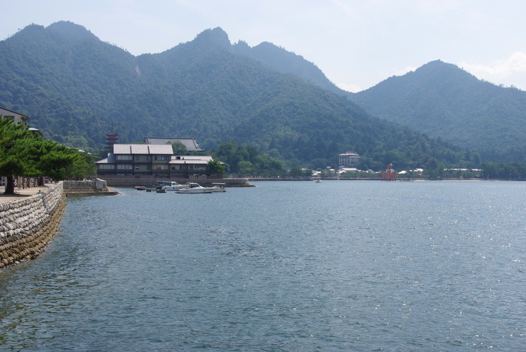 2017年8月、広島旅行に行きました。世界遺産厳島神社のある宮島へは本州側の宮島口からフェリーで結ばれています。フェリーは大松汽船とJR西日本の二社があり、JRは少し遠回りをして厳島神社の大鳥居を近くに見ることができる航路になっています。船上はデッキに出ると海風が心地よく、開放的な海と宮島のダイナミックな山並みを感じることができます。所要時間は約10分です。