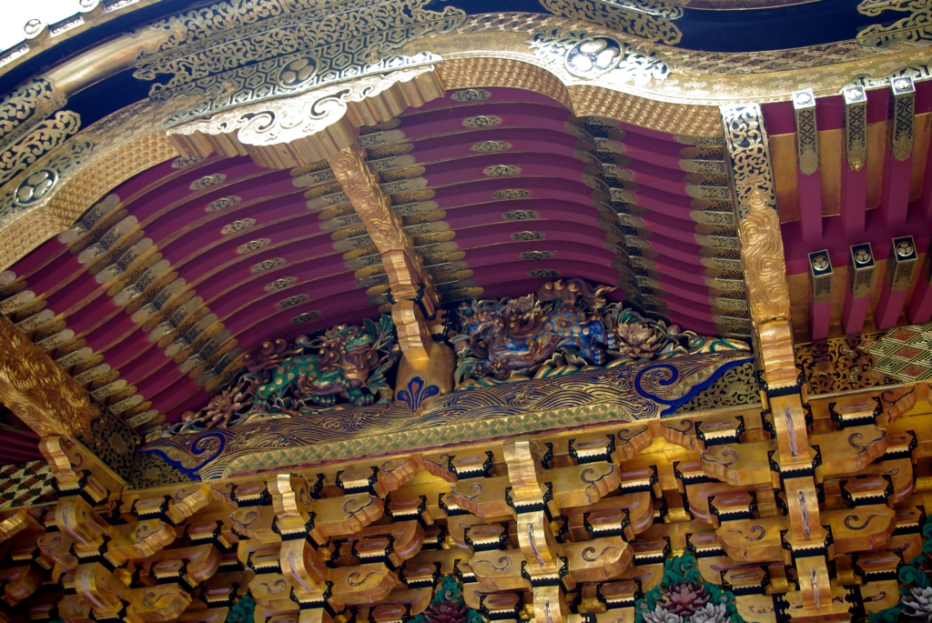 2017年8月、北関東旅行に行きました。日光山輪王寺大猷院は4代将軍徳川家綱により徳川家光の廟所として建造されました。祖父家康の東照宮を凌いではならないという遺言を受け、黒と金を基調とした落ち着いた造りの中で豪華な装飾が施されています。複数の重要文化財の門をくぐり、天へ昇るように拝殿まで登って行きます。拝殿・相の間・本殿が連なる権現造りの建物は別名を「金閣殿」といい、国宝に指定されています。世界遺産「日光の寺社」の1つに登録されています。