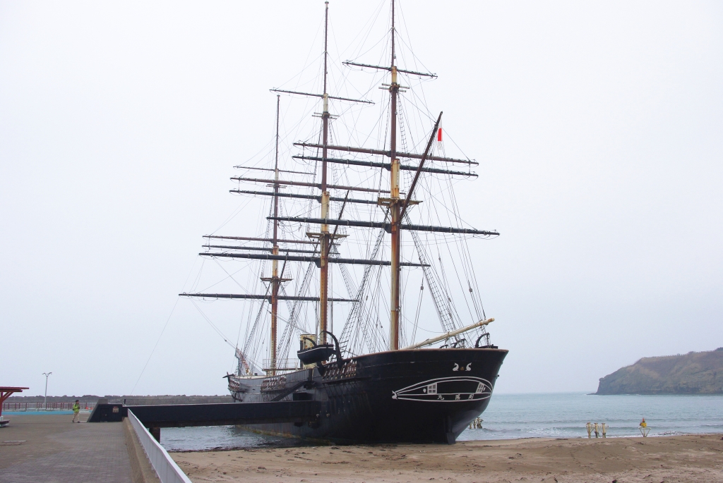 2018年5月、北海道旅行に行きました。函館の北西に位置し日本海に面した江差は北海道で最も早く開けた地域の1つです。かもめ島は標高20m、周囲約2.6㎞の陸繋島で、かもめの羽ばたく姿に似ていることから名付けられた江差のシンボルです。島への入口には戊辰戦争時に榎本武揚、土方歳三らが乗船し付近で沈没したオランダ製軍艦、開陽丸を復元した資料館があります。かもめ島は釣りスポットやキャンプ場になっており、10mの瓶子岩(へいしいわ)、1615年(元和元年)に航海安全を願い建立された厳島神社、1889年(明治22年)から点火される灯台(2代目)、風や波によって削られた千畳敷、弁慶の足跡、徳川幕府砲台跡、江差追分記念碑などの歴史、自然の見所があります。