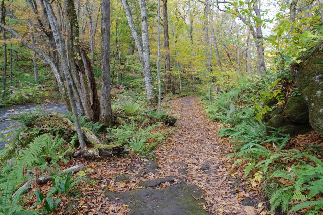 2019年10月、青森旅行に行きました。奥入瀬渓流は十和田湖東岸の子ノ口から焼山まで約14km続く奥入瀬川の渓流です。国の特別名勝、天然記念物に指定され、青森県を代表する景勝地です。渓流には遊歩道が整備され、鬱蒼と生い茂る豊かな樹木、美しい清流、瀑布街道とも呼ばれる数々の滝、奇岩や苔など、豊かな自然を体感することができます。特に新緑や紅葉の時期が美しく人気があります。撮影時は銚子大滝から雲井の流れまでの2.7kmを散策しました。