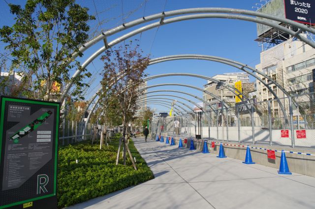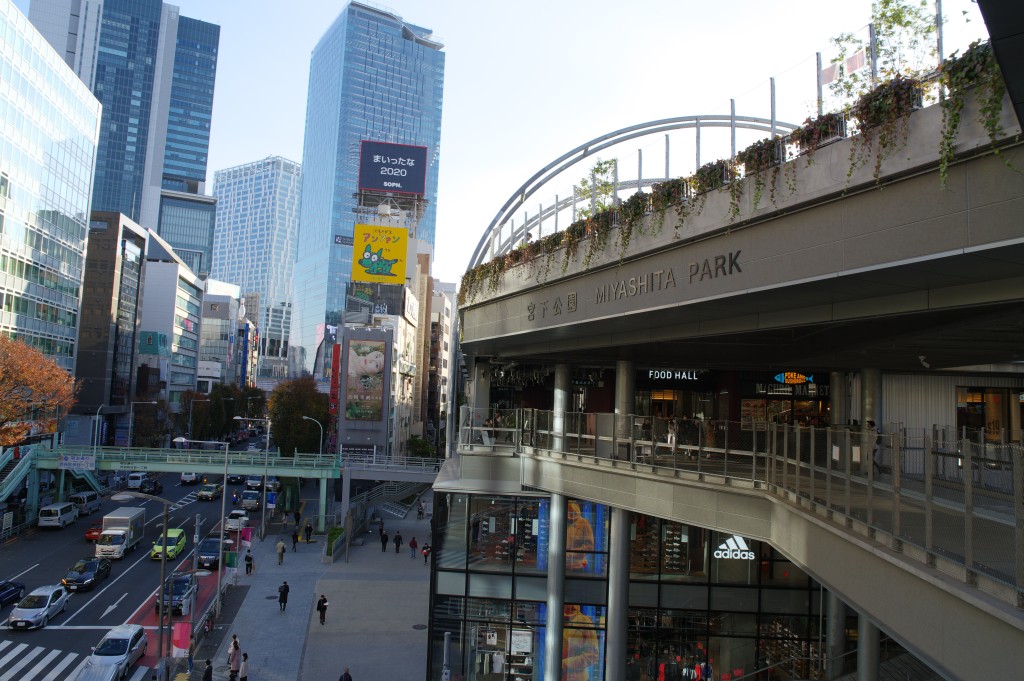 2020年12月、渋谷を散策しました。渋谷区立宮下公園は複合施設ミヤシタパーク(MIYASHITA PARK)の屋上に位置する公園です。元の公園は1953年(昭和28年)に開園し2011年(平成23年)にリニューアルした後、2020年(令和2年)7月に地上3階建ての複合施設のオープンと共に屋上の空中公園として生まれ変わりました。全長約330mの南北に細長い敷地で、天井にはアーチ状の天蓋が連なります。南側にはボルダリングウォール、スケート場、多目的運動施設(サンドコート)、北側には芝生広場やカフェがあります。公園・商業施設・ホテルが一体となった斬新な空間で、渋谷の新たなランドマークです。