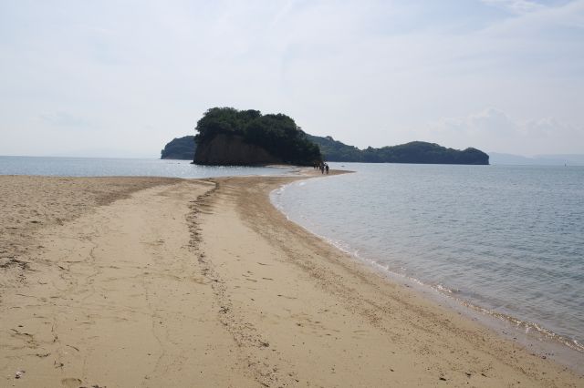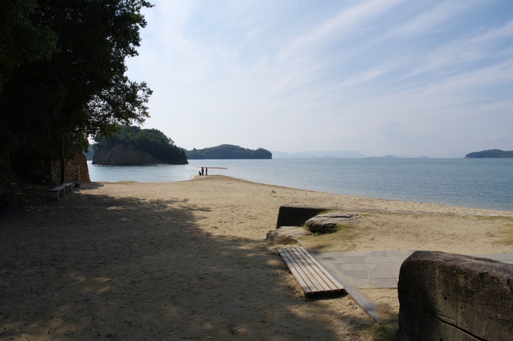 2021年10月、香川旅行に行きました。エンジェルロードは小豆島にある砂洲で、潮の満ち引きで現れたり消えたりする砂の道の景勝地です。「天使の散歩道」とも呼ばれ、「大切な人と手をつないで渡ると願いが叶う」と言われている恋人の聖地、縁結びスポットで、1日2回の干潮時に渡ることができます。但し中余島は私有地のためその手前までしか行けません。手前の約束の丘展望台には幸せの鐘があり、エンジェルロードを見渡すことができます。
