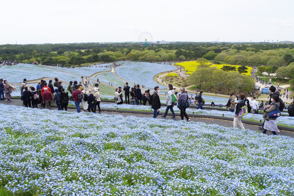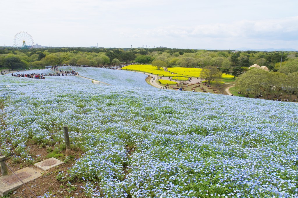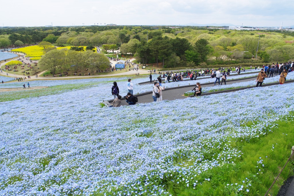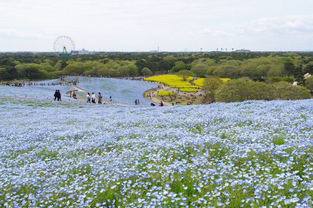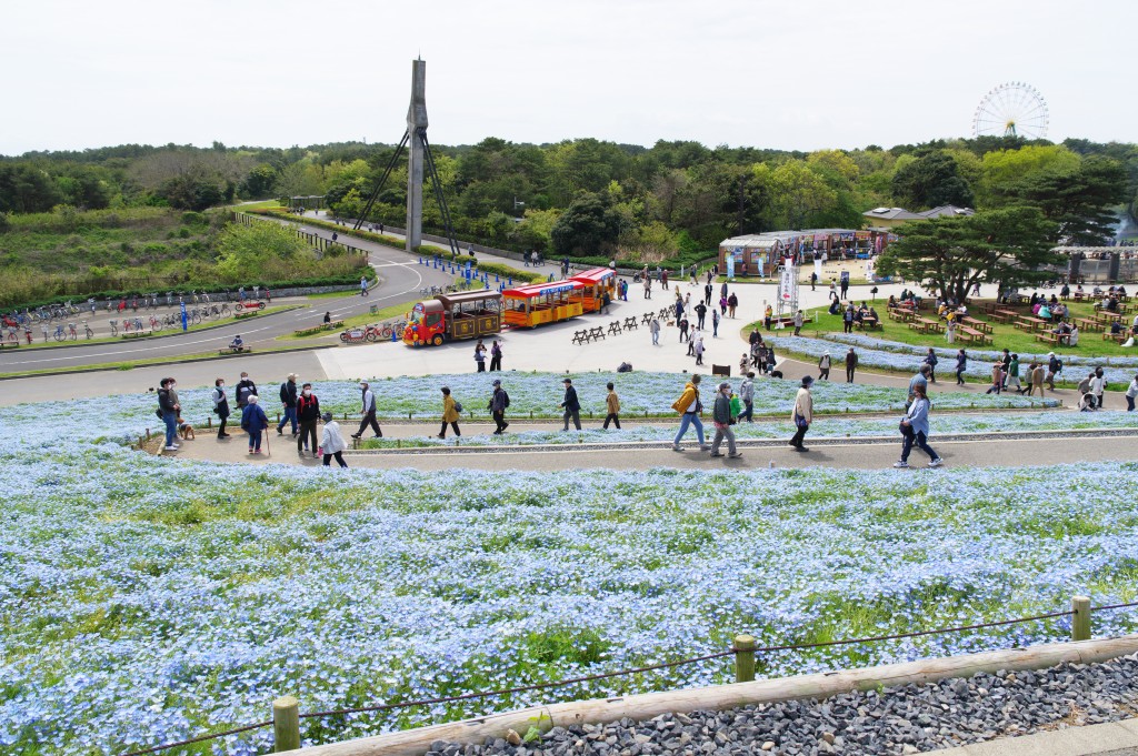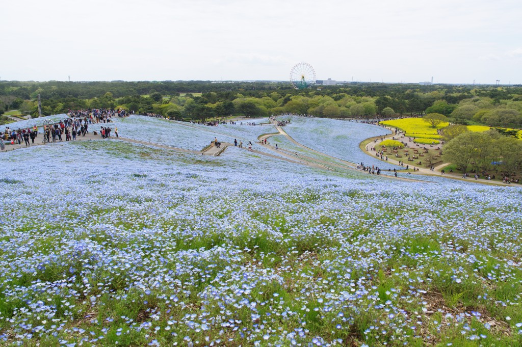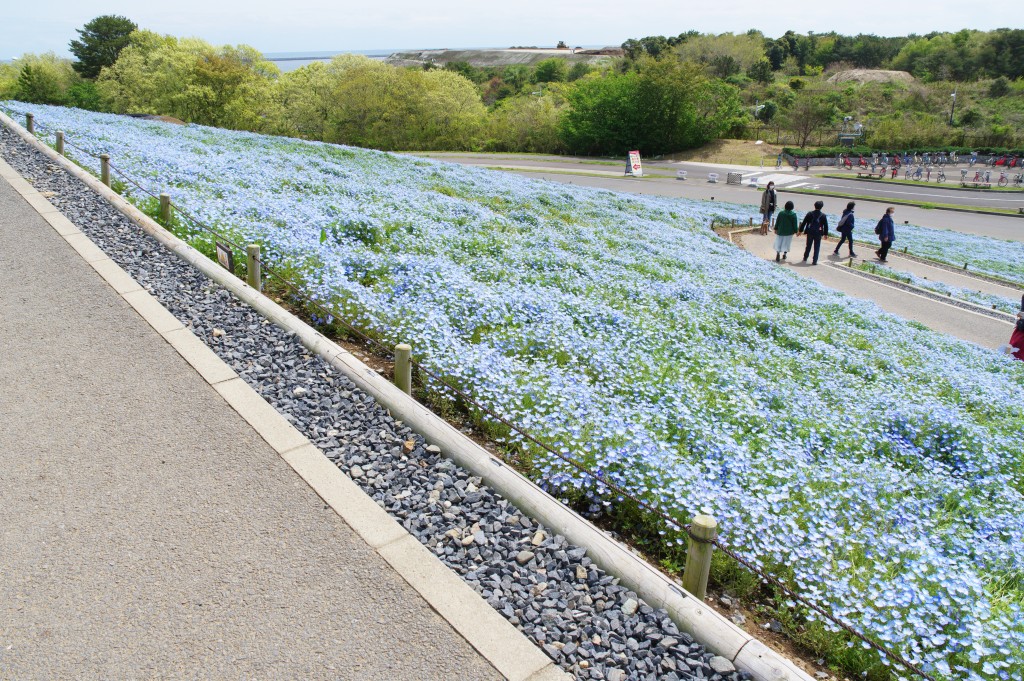 2021年4月、北関東の花スポットを訪れました。国営ひたち海浜公園は茨城県ひたちなか市に位置する約350haと広大な面積の公園です。元は飛行場や射爆撃場として使われていた跡地で、1991年(平成3年)に開園して以来拡張を繰り返しています。広い園内は7つのエリアに分かれ、四季折々に咲く多彩な草花を楽しむことができます。中でも「みはらしの丘」で5月頃に見頃を迎える一面に青いネモフィラが広がる光景は茨城県を代表する絶景です。