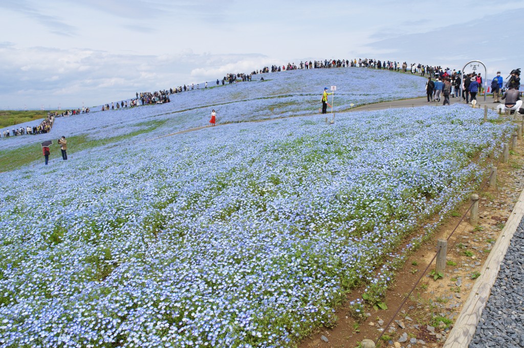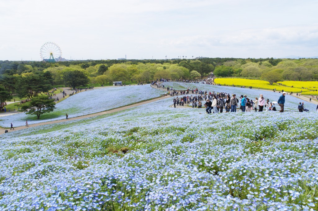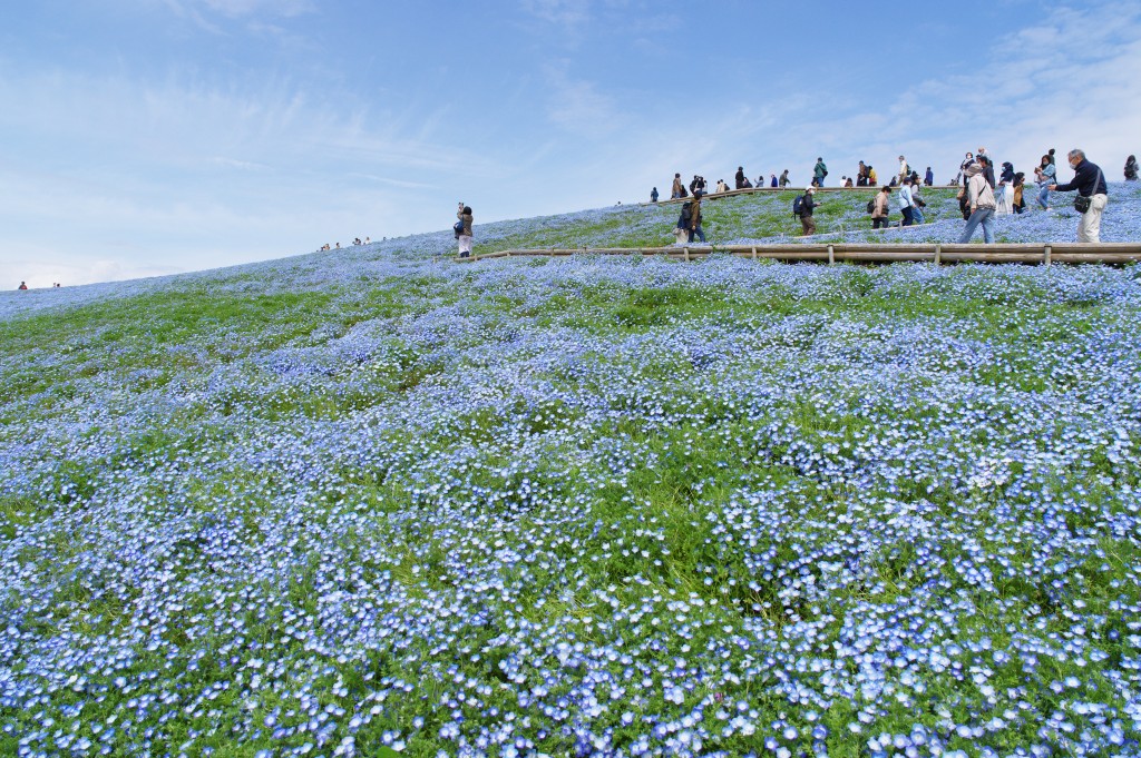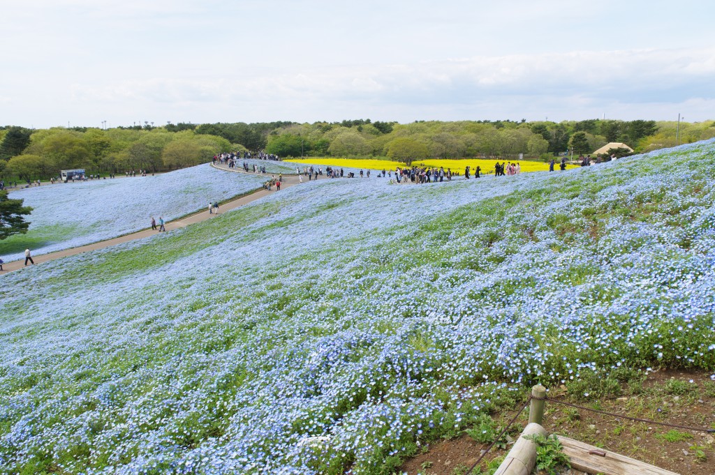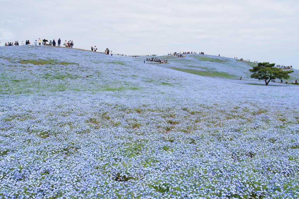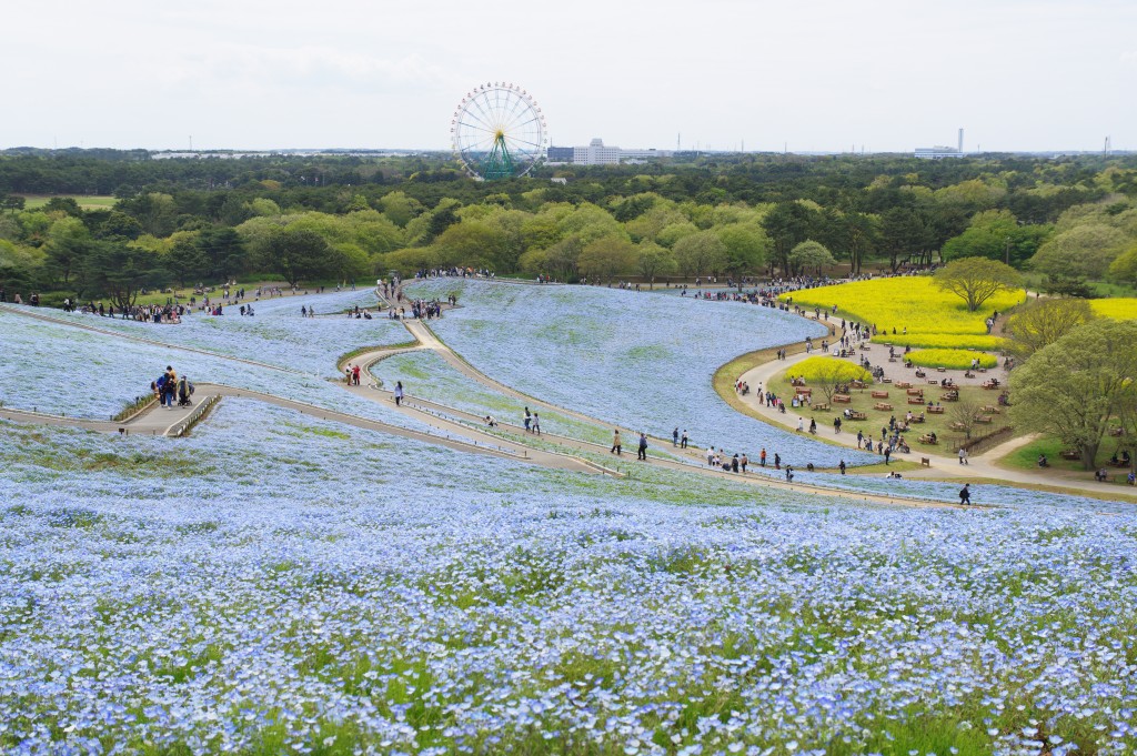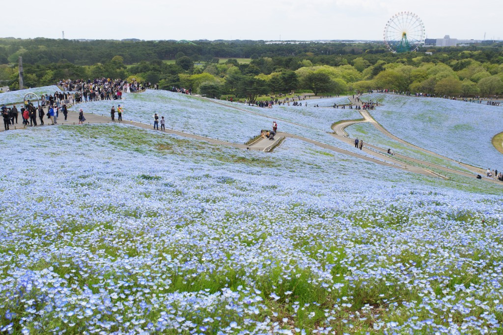 2021年4月、北関東の花スポットを訪れました。国営ひたち海浜公園は茨城県ひたちなか市に位置する約350haと広大な面積の公園です。元は飛行場や射爆撃場として使われていた跡地で、1991年(平成3年)に開園して以来拡張を繰り返しています。広い園内は7つのエリアに分かれ、四季折々に咲く多彩な草花を楽しむことができます。中でも「みはらしの丘」で5月頃に見頃を迎える一面に青いネモフィラが広がる光景は茨城県を代表する絶景です。
