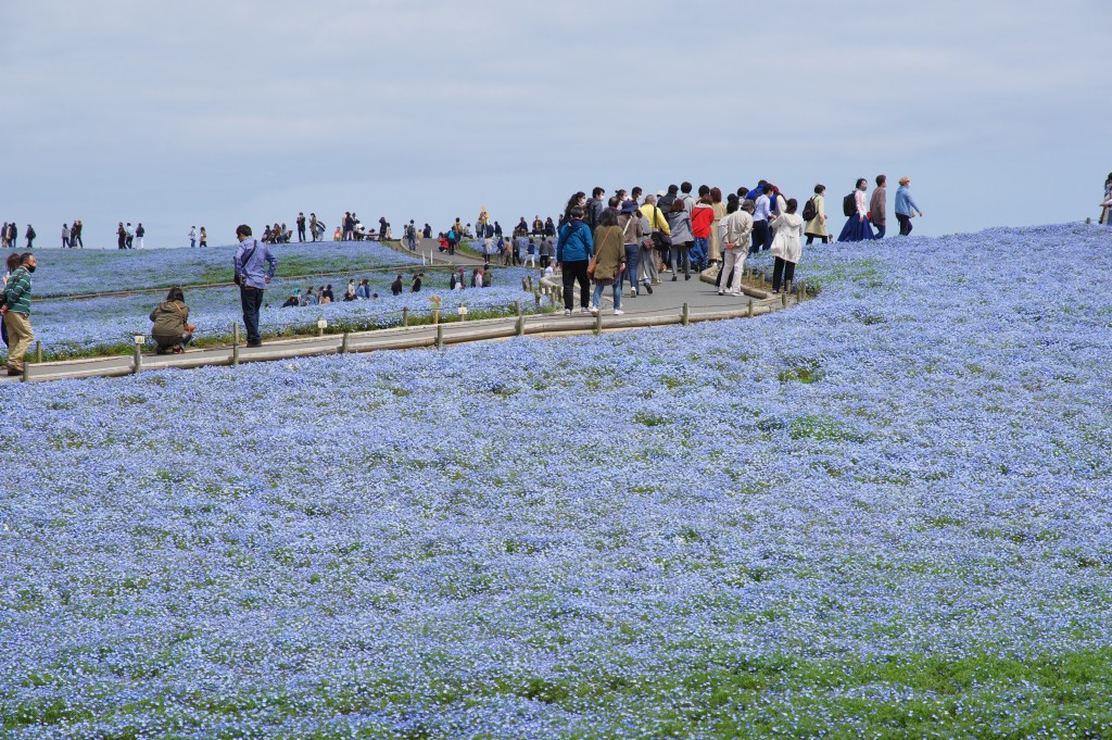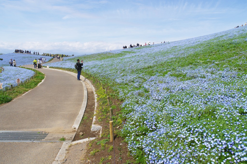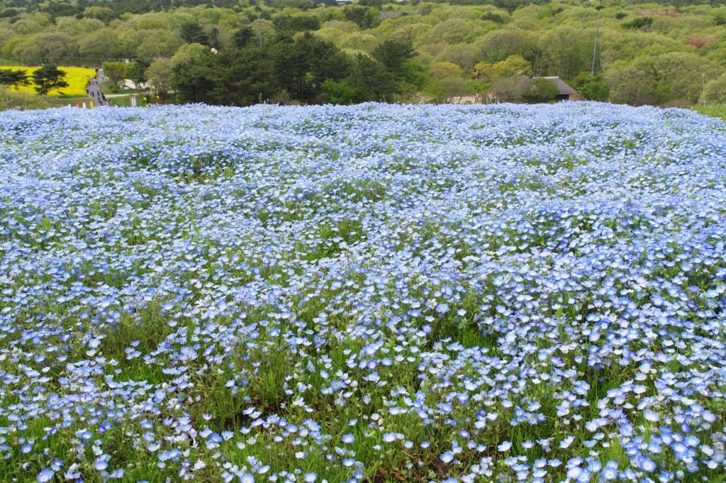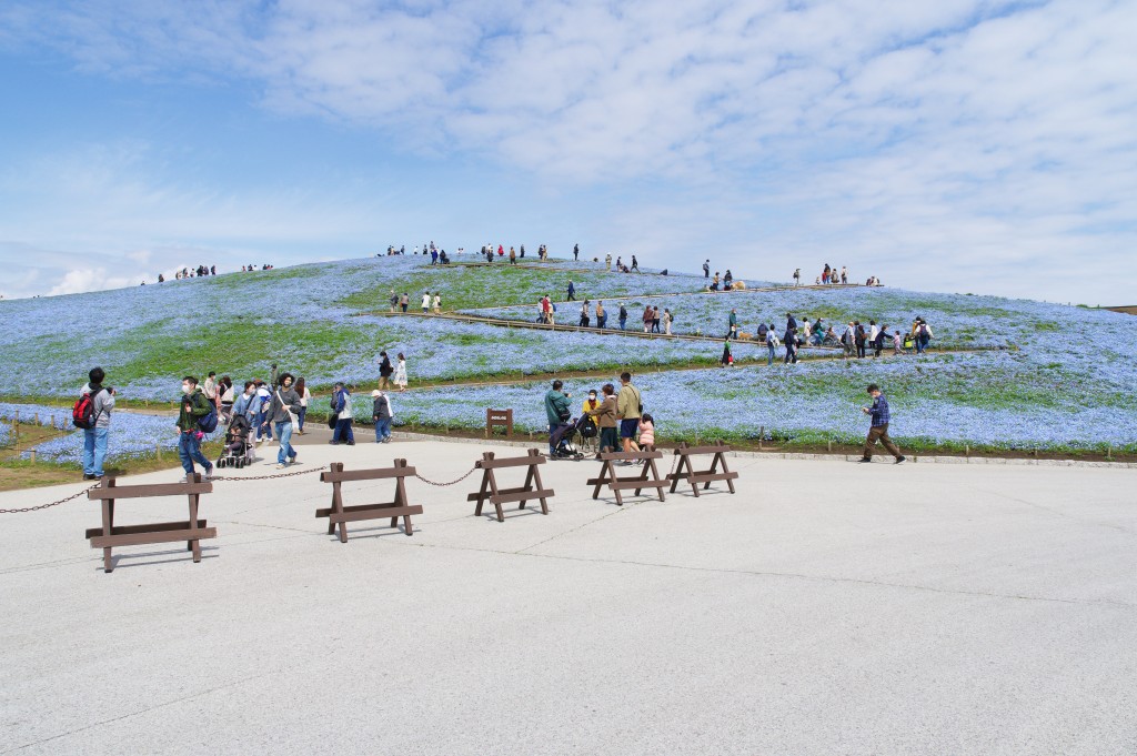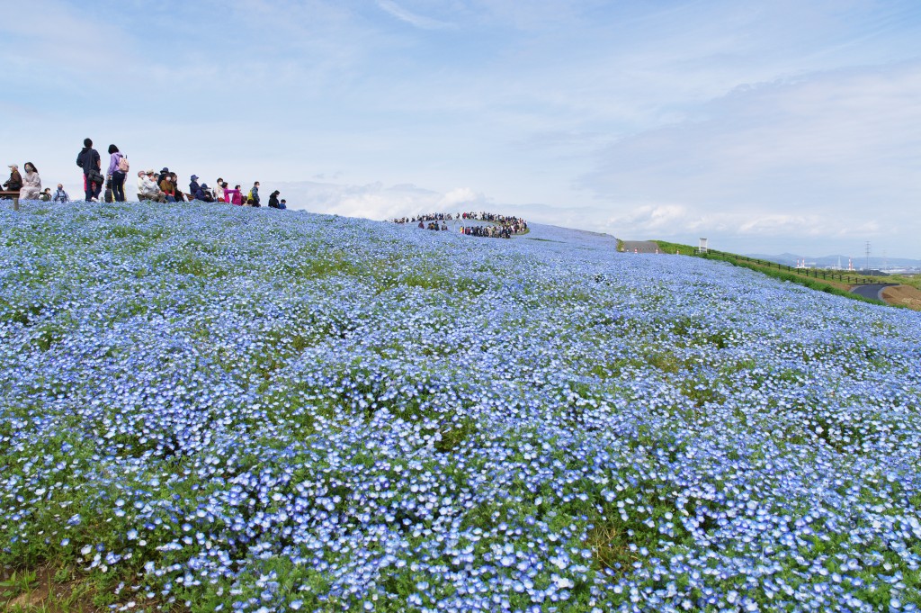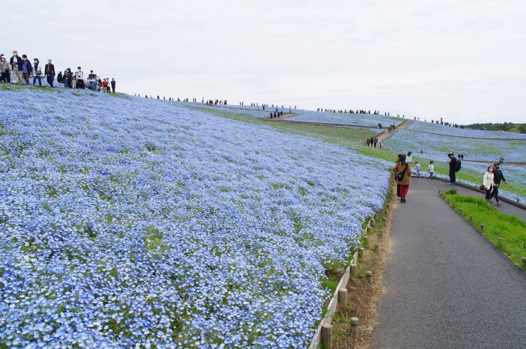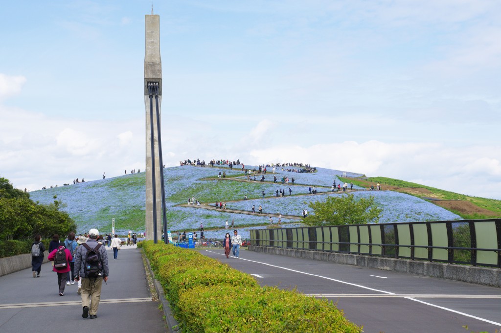 2021年4月、北関東の花スポットを訪れました。国営ひたち海浜公園は茨城県ひたちなか市に位置する約350haと広大な面積の公園です。元は飛行場や射爆撃場として使われていた跡地で、1991年(平成3年)に開園して以来拡張を繰り返しています。広い園内は7つのエリアに分かれ、四季折々に咲く多彩な草花を楽しむことができます。中でも「みはらしの丘」で5月頃に見頃を迎える一面に青いネモフィラが広がる光景は茨城県を代表する絶景です。
