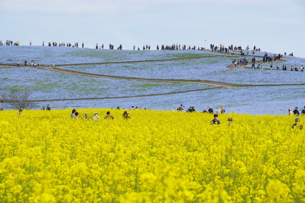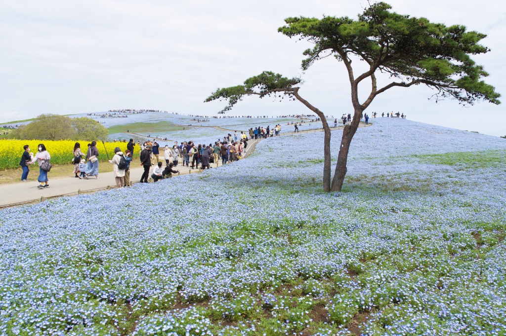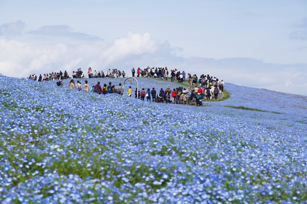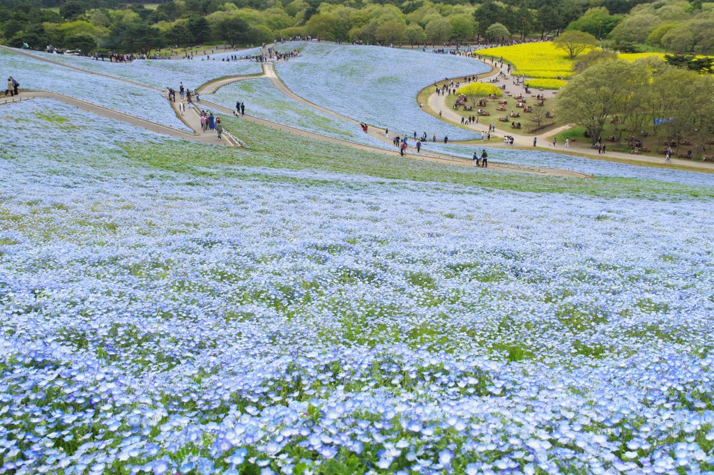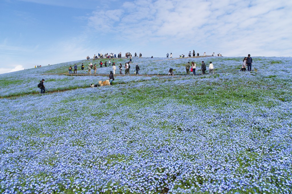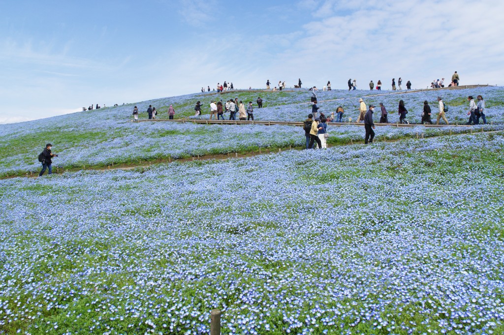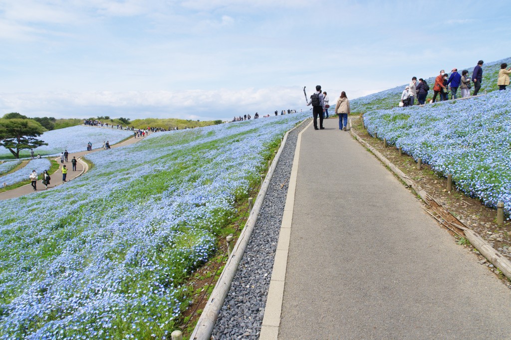 2021年4月、北関東の花スポットを訪れました。国営ひたち海浜公園は茨城県ひたちなか市に位置する約350haと広大な面積の公園です。元は飛行場や射爆撃場として使われていた跡地で、1991年(平成3年)に開園して以来拡張を繰り返しています。広い園内は7つのエリアに分かれ、四季折々に咲く多彩な草花を楽しむことができます。中でも「みはらしの丘」で5月頃に見頃を迎える一面に青いネモフィラが広がる光景は茨城県を代表する絶景です。