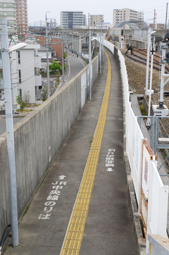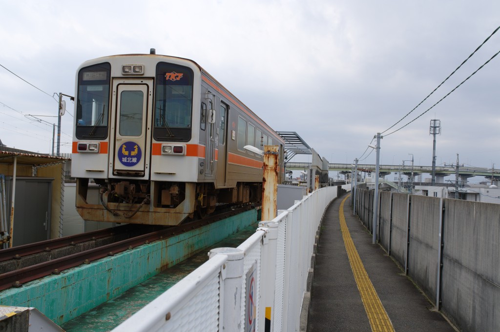 2021年4月、愛知旅行に行きました。勝川駅はJR東海・中央本線と東海交通事業・城北線の駅です(城北線は無人駅)。乗り換え駅ですが両駅は約500m離れた場所にあり、将来的には城北線が中央本線駅側に乗り入れる予定です。中央本線の駅は2009年(平成21年)に高架化が行われ、島式ホーム2面4線から城北線乗り入れを想定した2線を抜いた形のホームとなっています。城北線の駅は単式ホーム1面1線の高架駅で、中央本線駅の手前に位置する仮設のホームとなっており、階段のみでエレベーターやエスカレーターは設置されていません。駅の奥には検査施設があります。具体的な乗り入れ時期は未定です。