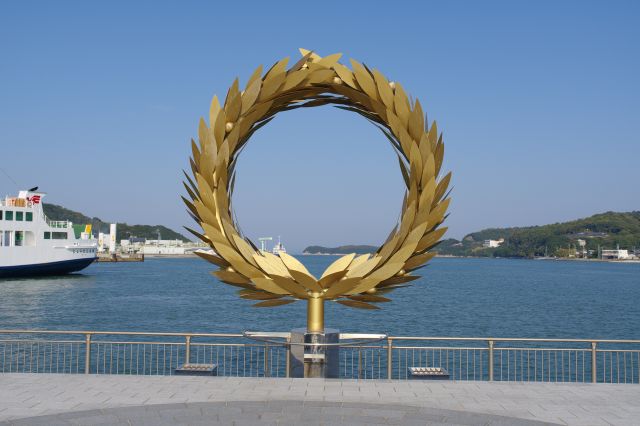 2021年10月、香川旅行に行きました。土庄港(とのしょうこう)は小豆島西部にある港です。高松港、宇野港へは高速艇が、2港と新岡山港へはフェリーが就航しています。島内でも船の便数が多く、港周辺にはホテルや土産物屋などがあり、観光の拠点にもなる小豆島の玄関口的な港です。港の前にはオリーブの王冠のモニュメントの「太陽の贈り物」や、小豆島出身の壺井栄の小説「二十四の瞳」をモデルにした「平和の群像」があります。