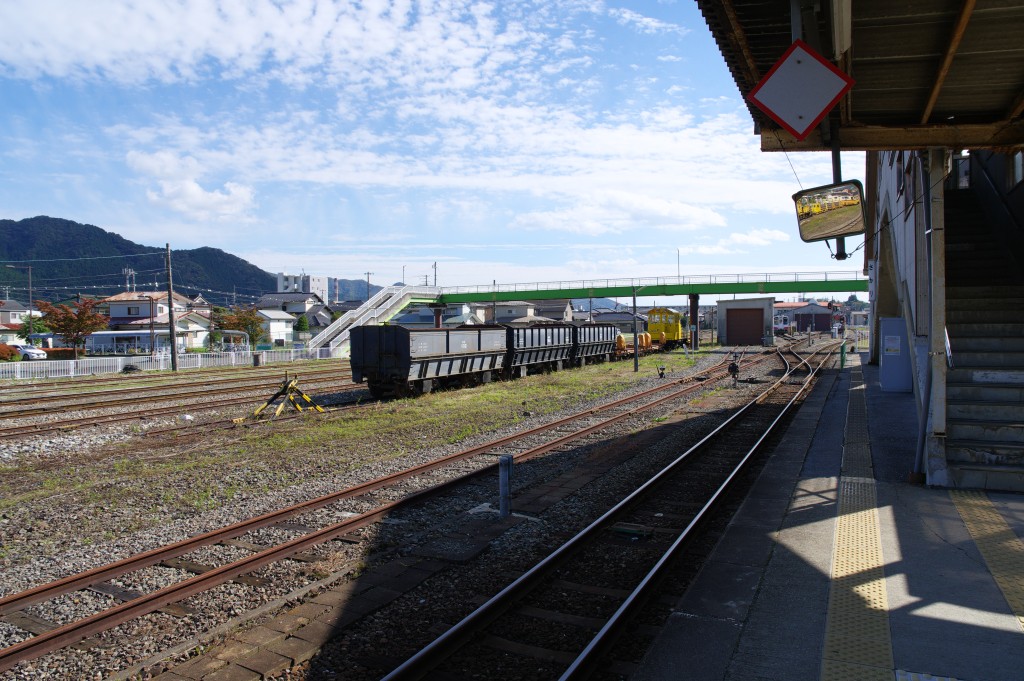 2022年10月、三陸南部へ旅行に行きました。盛(さかり)駅は大船渡市にあるJR大船渡線BRT、三陸鉄道、岩手開発鉄道(貨物)の駅です。大船渡駅と併せて大船渡市の市街地の1つであり、近隣に市役所があります。2011年(平成23年)の東日本大震災では被害を受けて全路線で運休し、駅構内にも津波が押し寄せています。大船渡線は2013年(平成25年)にBRTとして仮復旧し、2020年(令和2年)には気仙沼~盛駅間が鉄道事業廃止となりました。三陸鉄道も2013年に営業再開しています。ホームは2面3線ですが1,2番線はBRTの専用道となっており、鉄道とBRTが共存する駅となっています。