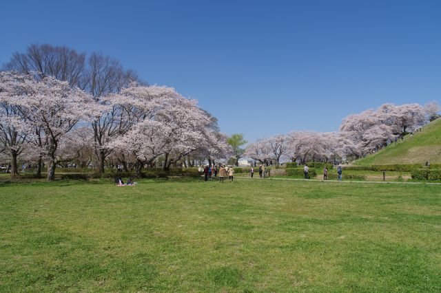 2022年4月、行田・熊谷の桜スポットを訪れました。さきたま古墳公園は行田市にある埼玉県営の都市公園です。国の史跡に指定されている大型の古墳群があり、そられと調和のとれた公園の整備が進められています。丸墓山古墳は日本一の規模の円墳といわれており、園内一番の桜スポットでもあり、その上からは行田市内や天気が良いと忍城が見られます。稲荷山古墳からは金錯銘鉄剣が出土しています。日本の歴史公園100選に選定されており、埼玉(さきたま)という地名が県名の由来とされ「埼玉県名発祥の碑」があります。