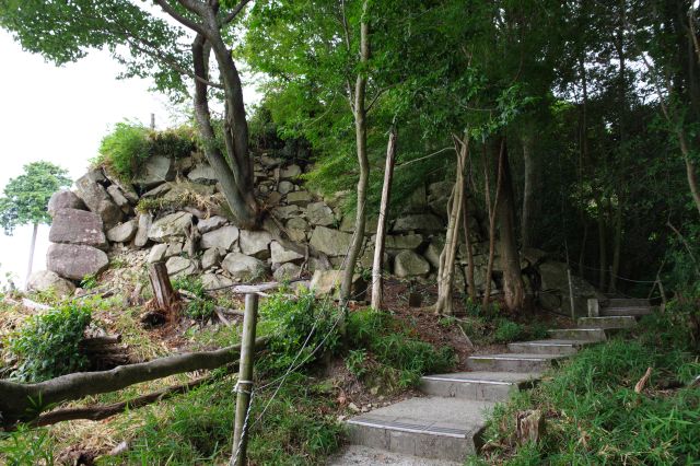 秀次は後継者争いのため28歳で自害させられた「秀次事件」でも知られ、本丸には秀次の菩提寺の瑞龍寺があります。本丸の他に二の丸、西の丸、北の丸、出丸があり石垣が残り、琵琶湖や安土山や近江八幡の市街地などの幅広い眺望が見られます。山上へはロープウェイでアクセスできます。