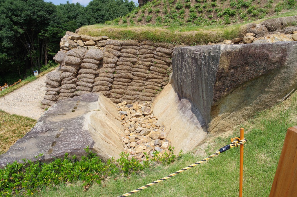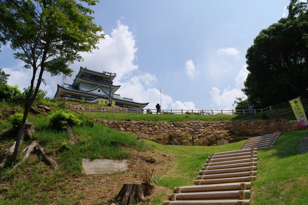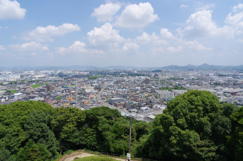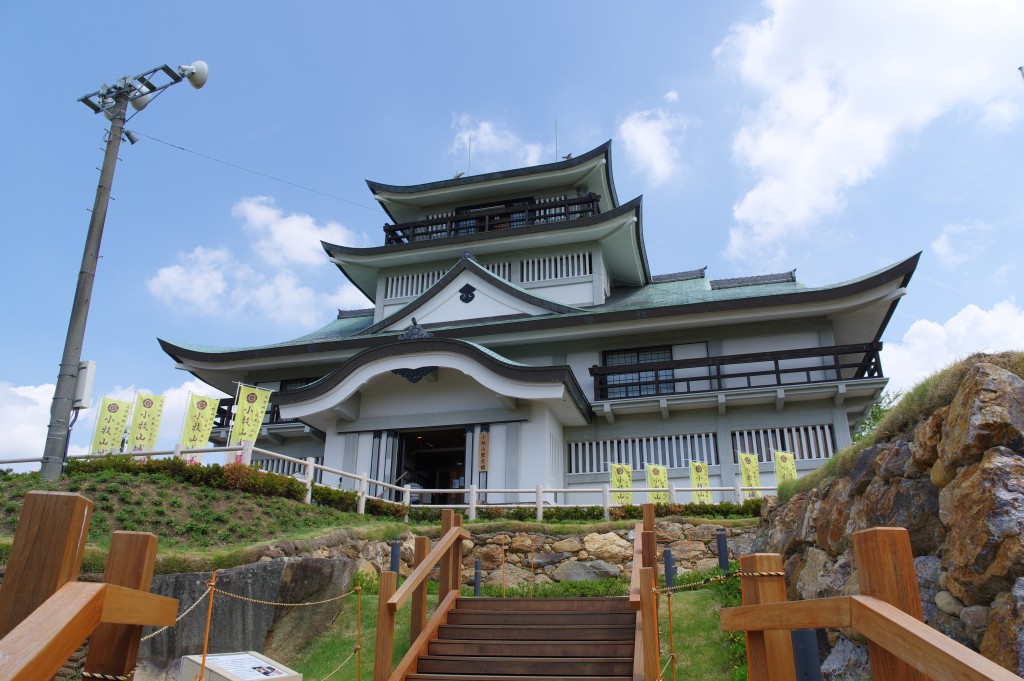 2024年7月、愛知の城巡り旅行に行きました。小牧山城は標高86mの小牧山にあった城です。織田信長により永禄6年(1563年)に築城され、小牧・長久手の戦いでは織田・徳川軍が陣を置いて羽柴秀吉と対峙しています。石垣や土塁や堀などの遺構が残り、史跡公園となっています。現在の城郭風建築(小牧山歴史館)は1968年(昭和43年)に実業家が建築し市に寄付したものです。