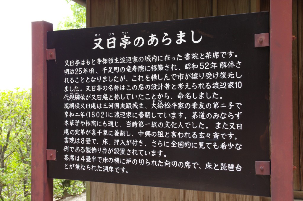 櫓に隣接する「又日亭」(ゆうじつてい)という書院は寺部城にあったものが移築されたものです。