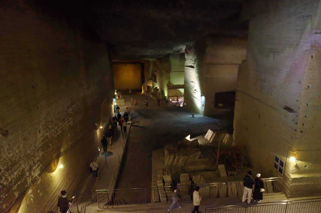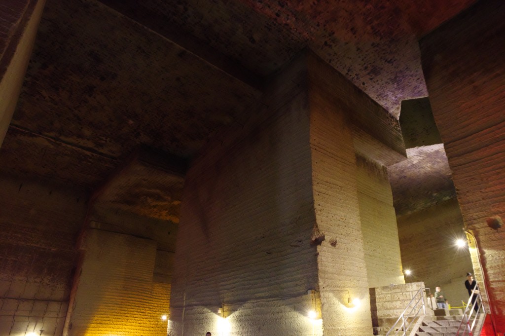 2024年4月、足尾と宇都宮へ旅行に行きました。大谷資料館は宇都宮市大谷町にある大谷石採石場跡を利用した博物館です。1919年(大正8年)から1986年(昭和61年)まで大谷石を掘り出した2万平方メートル、深さ30メートルに及ぶ巨大な地下空間で、坑内は年間通して気温8℃前後です。手掘り時代からの採掘方法や運搬方法の移り変わりなどを展示しています。空間を利用してコンサートや美術展や挙式などにも利用されています。