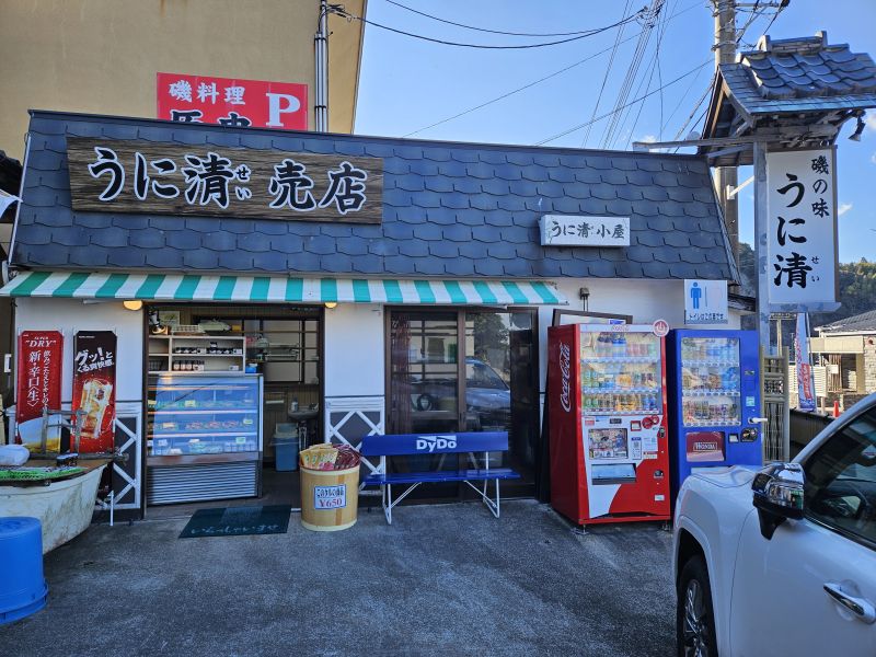昼食は13:30に予約していた海鮮料理屋さん「うに清」(うにせい)へ。自然豊かな真鶴岬から戻って街並みが始まるすぐの所にありました。