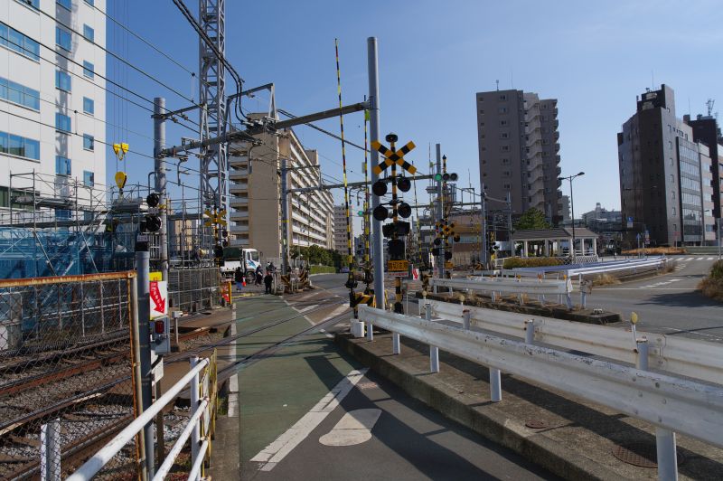 そろそろ先に進みますが、踏切周辺は渡れないので横断歩道のある大通り沿いまで戻ります。