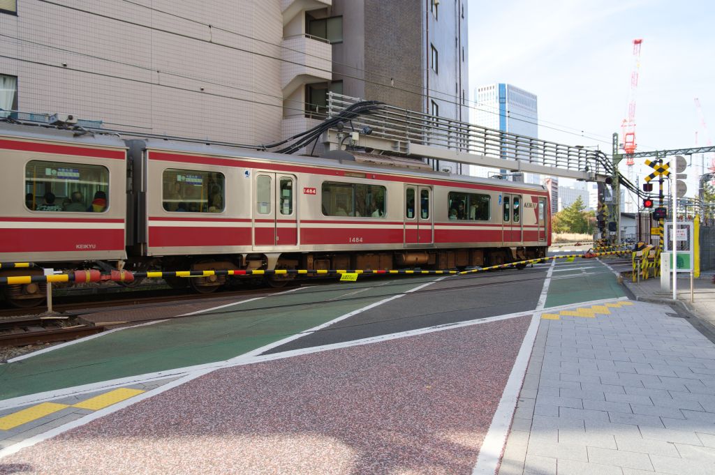 北品川駅前の踏み切りも(前ページで紹介した)八ツ山橋同様に同様に沢山の電車が行き来しています。