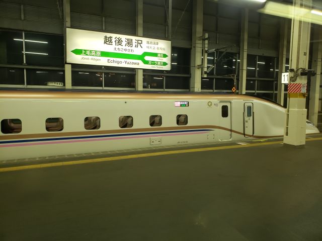 越後湯沢では最新のE7系が止まっていました。いずれこれに置き換わることになります。最新なのは良いですが2階建てのインパクトがなくなるのは惜しいです。E7系上越新幹線(※)後日台風19号による北陸新幹線の車両の浸水により、上越新幹線で運行中、製造中のE7系が北陸新幹線に回され、E4系が延命されることになりました。