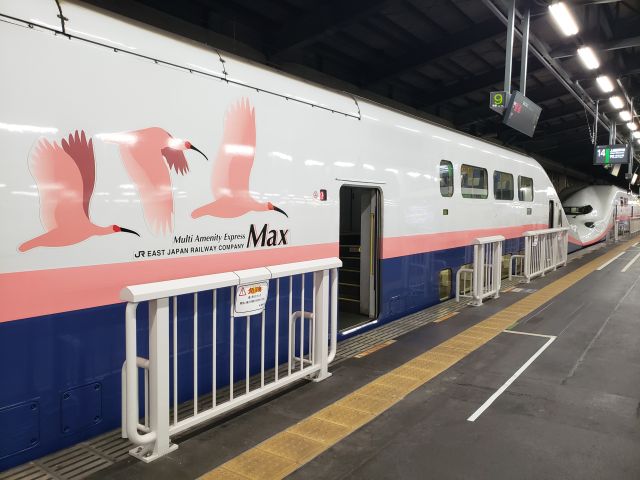吹奏楽の演奏会を終えてから夜に新潟に向かいます。オール二階建ての上越新幹線E4系Maxとき、引退間近ですが初めて乗りました。フルサイズの車体は目の前で見ると本当に大きくて迫力があります。