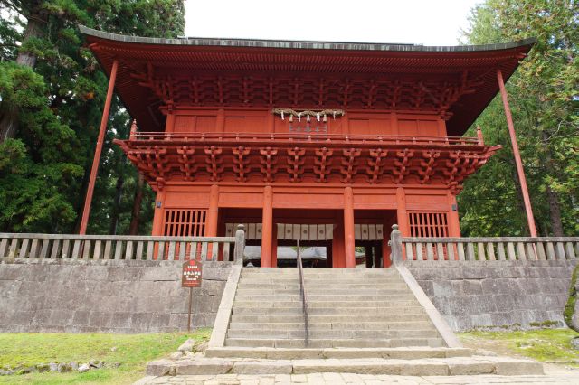 岩木山をバックにした、緩やかに登って行く坂道の参道の先に立派な建物が建つ神社です。上の方に水が湧き出る所があり、それが流れ落ちる音が境内に響いて心地よいです。
