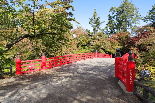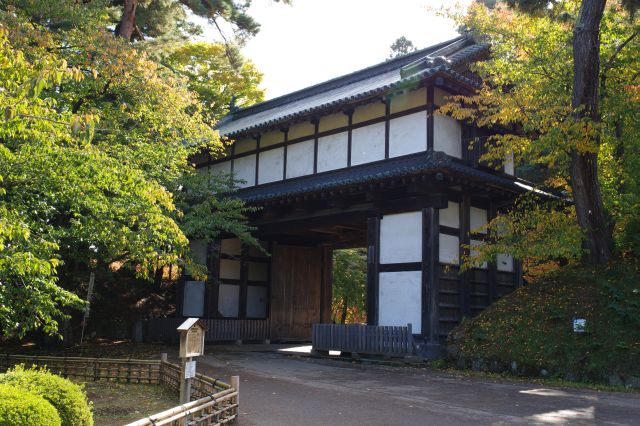 広くて高木が立ち並び、自然の香りを感じられて心地よい城内。門や橋を渡って各櫓と天守を巡りました。赤い橋からは本丸の角の石垣の上に天守が見えるはずですが、現在は石垣工事中のため天守は本丸の中へと引っ越し中。天守の手前には木組みの展望台があり、岩木山をバックに望むことができて良い風景でした。これなら引越し中でも楽しめます。広い城内を急ぎ足で四の丸の北門まで行って東門から出ました。