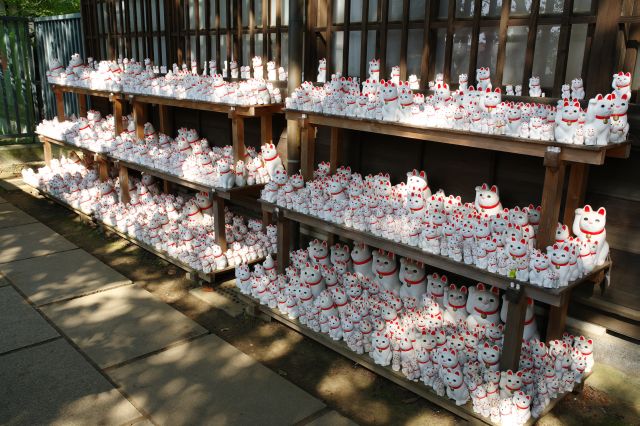 ・建物脇に幻想的な招福猫児、数の多さに圧倒される