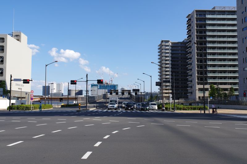 最寄り駅は都営大江戸線の勝どき駅ですが徒歩距離が長いので、東京・新橋・銀座方面を行き来するバスで「ほっとプラザはるみ前」または「晴海埠頭」バス停で下車すると楽です。