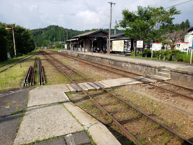 岩村駅は明知線のほぼ中央に位置し、唯一列車交換(行き違い)が可能な駅です。「中部の駅百選」に選定されています。