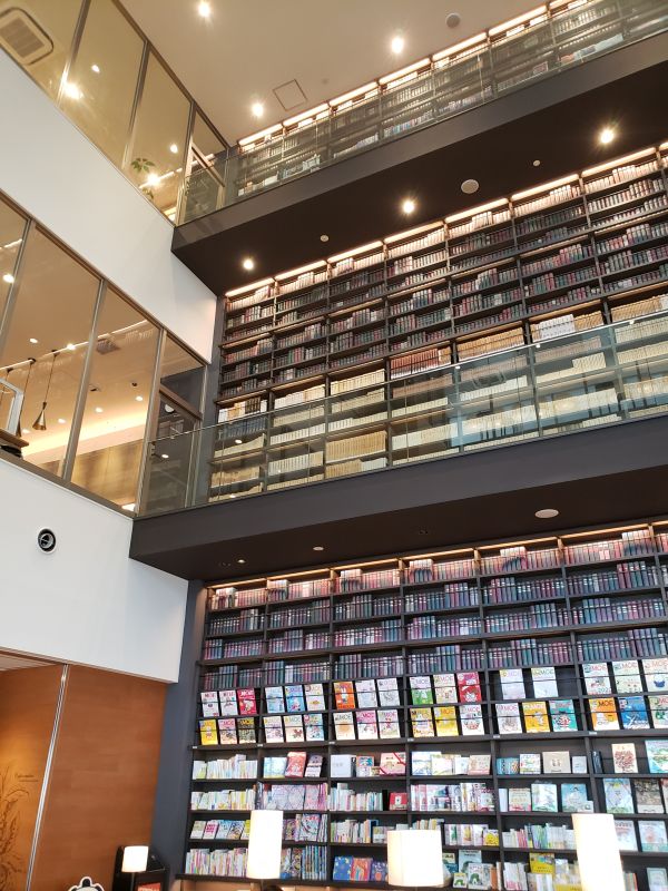 山登りと暑さで体力を奪われ、この日はもう観光したり動くのは無理と判断。2階の蔦屋書店等のフロアでのんびり涼みながら戻りの列車を待ちました。ブラウンを基調とした落ち着いた雰囲気で新しくきれいなスペースで、沢山の人がいて静かに利用していました。