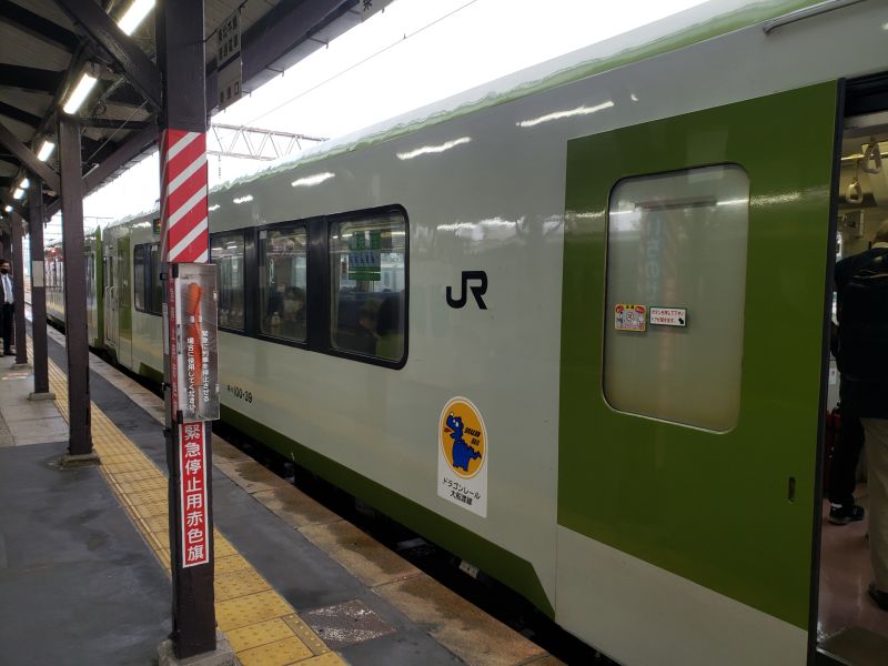 ドラゴンレールという愛称があり「我田引鉄」とも称される「コの字型」区間がある独特の線形の路線。途中の猊鼻渓である程度降りました。ワンマン運転で駅ごとに運転手が改札業務をしていました。