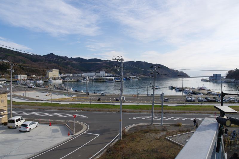 女川に到着。海沿いの一帯を造成し直した雰囲気から津波の被害を連想させます。