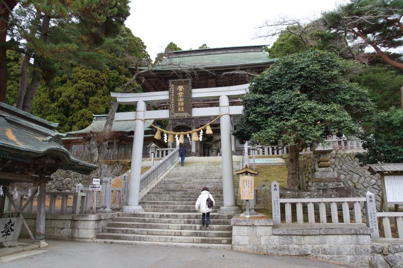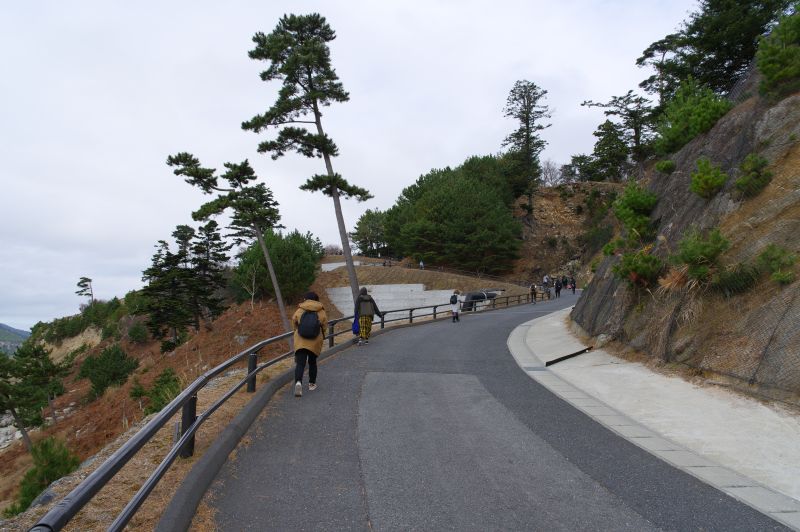大きな鳥居をくぐり急坂道を登っていきますが車(バン)に乗ることもできるようですので足に自信のない方は乗車した方が良いです(特に戻りの船の時間が決まっているため)。