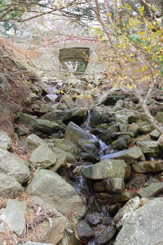 景色を楽しみながら登っていきます。船の音、静か、何か所か斜面から水の流れも。